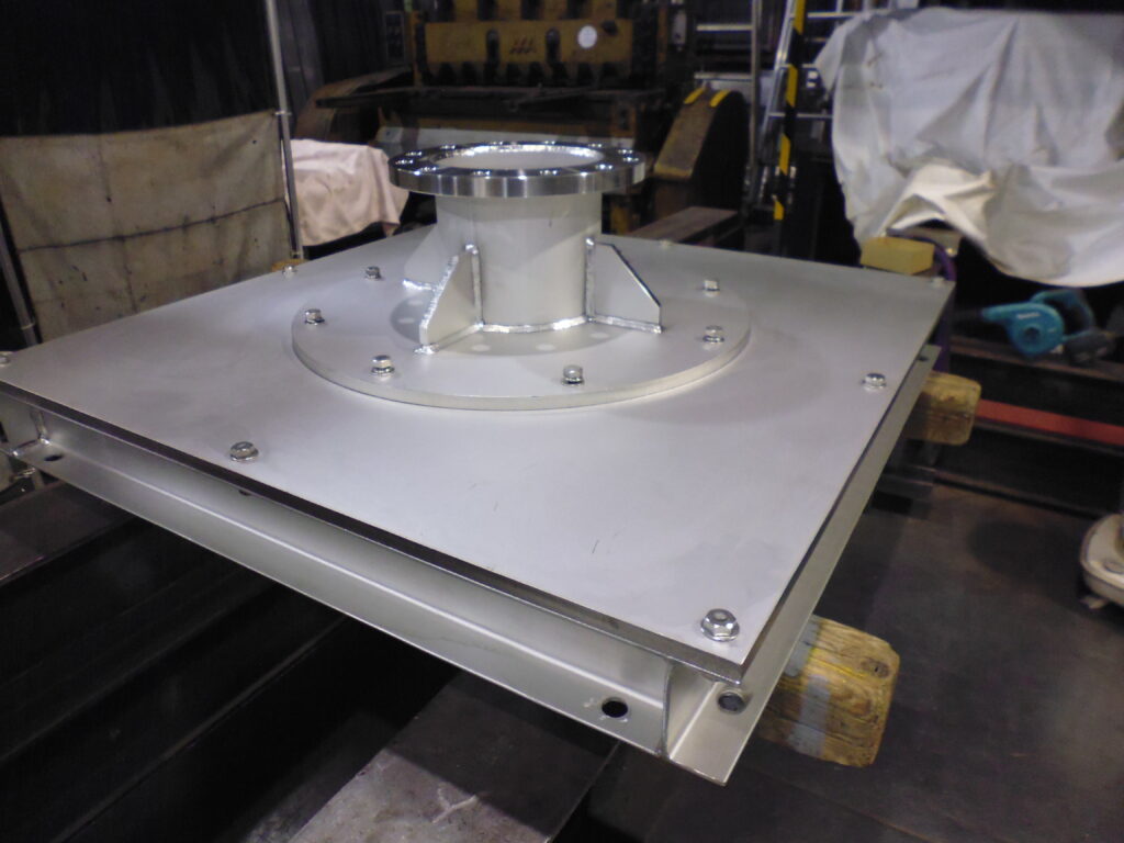 沿岸部に隣接するビル空調用に塩害対策の為、ステンレス鋼材を使用して室外機架台を製作いたしました。中性電解液による電解研磨及び弱酸性洗剤による仕上げ処理を施してあります。